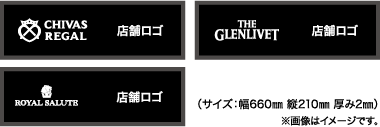 - ※バーマットに記載するブランドロゴは次の3ブランドから選択してください。(シーバスリーガル/ザ・グレンリベット/ローヤルサルート)